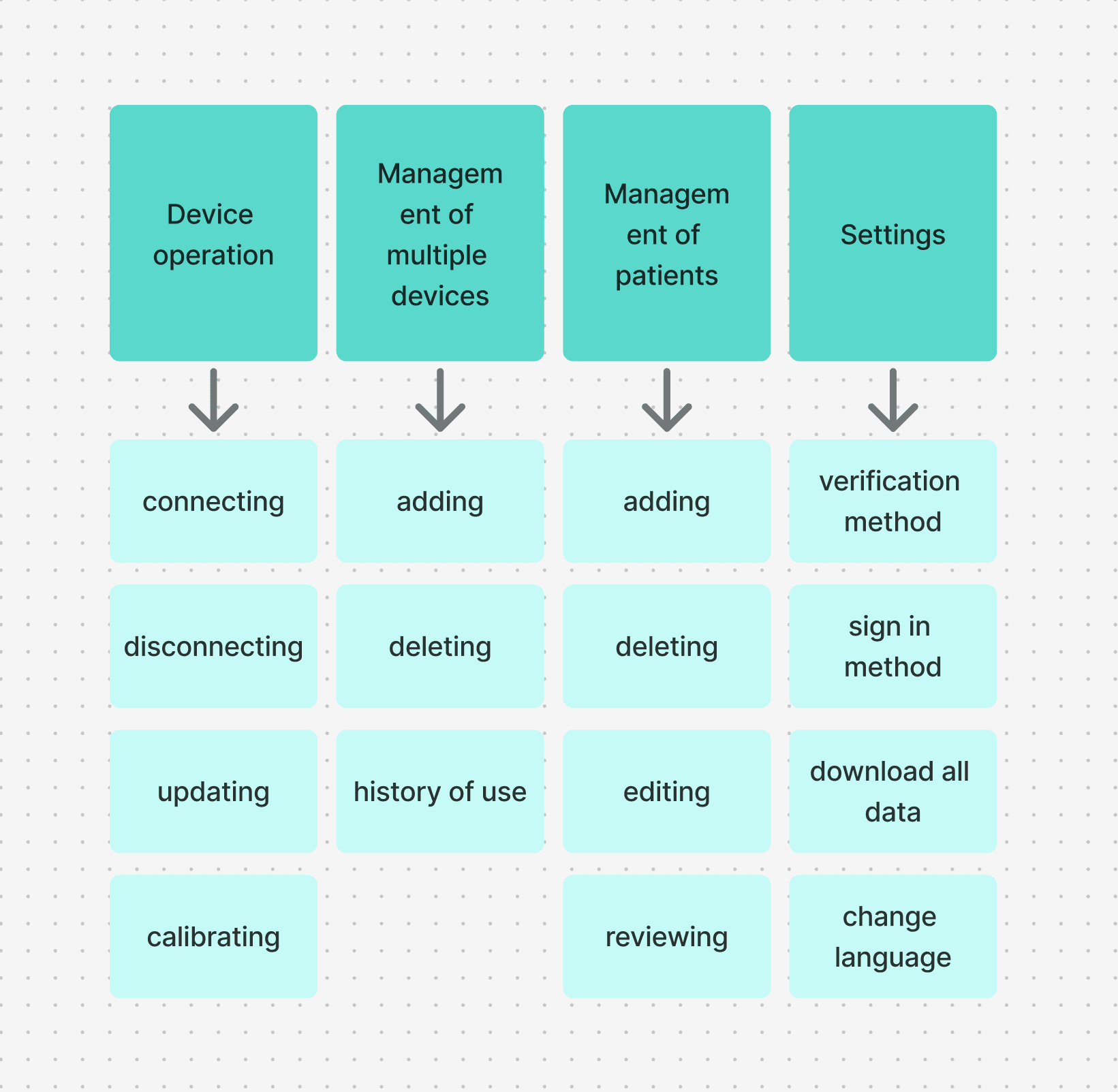 All operations and requirements were gradually transformed into an information architecture using a FigJam board. At this stage, I focused on: