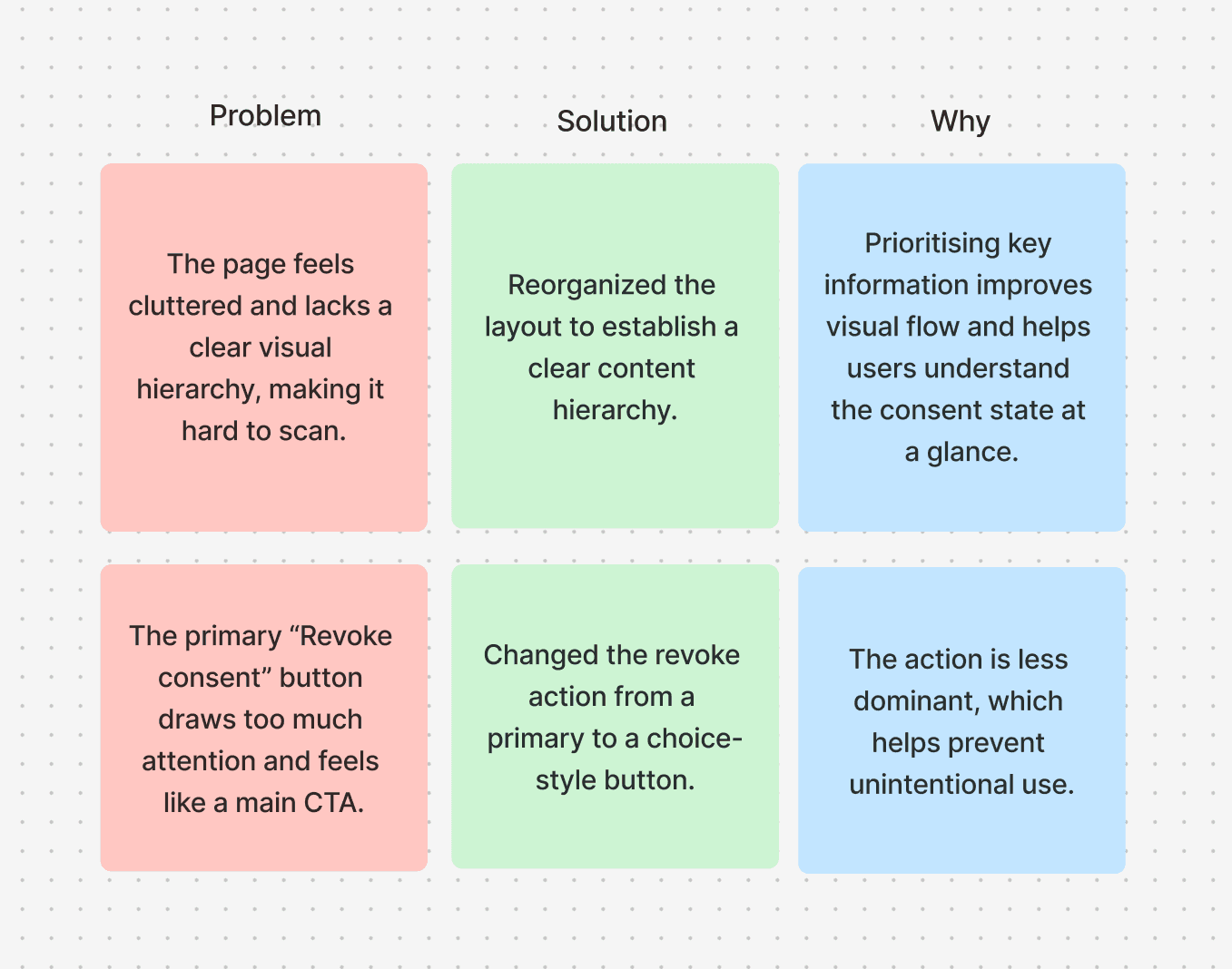 Faster comprehension of consent status and details
