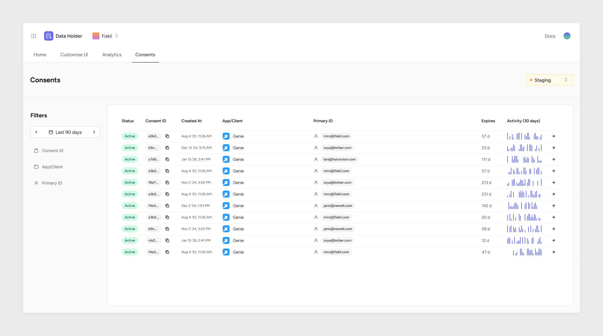 Clear, at-a-glance understanding of consent activity